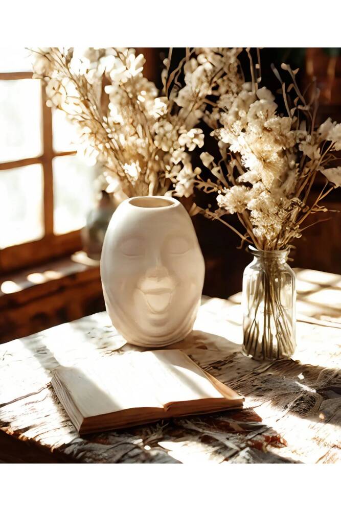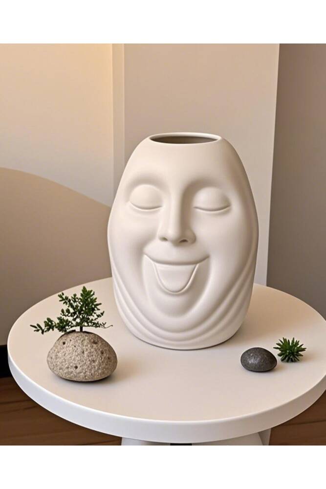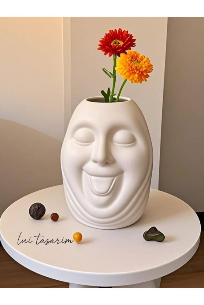 - Bohem tarzı ile ev dekorasyonunuza şıklık katan seramik vazo, İskandinav estetiğiyle modern bir dokunuş sunar.; - 23 cm boyutuyla büyük ve geniş tasarımı sayesinde bolca bitki veya çiçek barındırabilir, mekanınıza doğal bir güzellik katabilirsiniz.; - Sevimli surat yüzüyle dikkat çeken bu vazo, hem dekoratif hem de eğlenceli bir aksesuar olarak kullanıma uygundur.; - Tek parça halinde gelen bu ürün, kolay montaj avantajıyla hızlıca kullanımınıza hazır hale gelir.; - Yerli üretim olup, Türkiye'de üretilmiş olmasıyla kalite ve dayanıklılığı garanti eder.