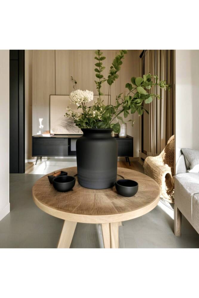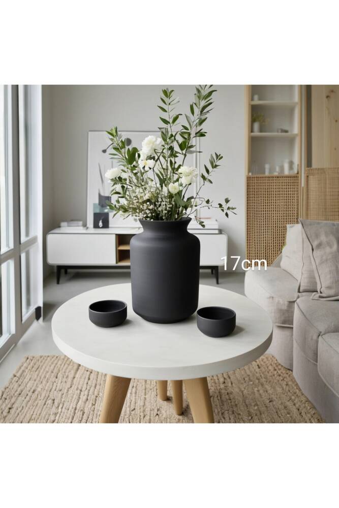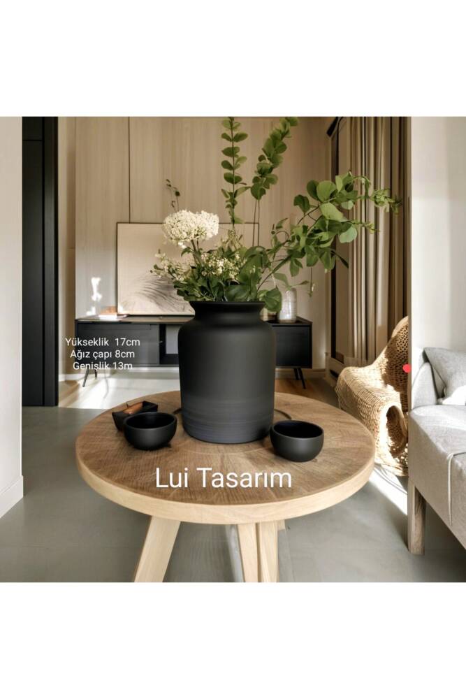 İskandinav Tarzı Seramik Bohem Tarzı Siyah Trend XL Büyük Boy vazo 17 cm