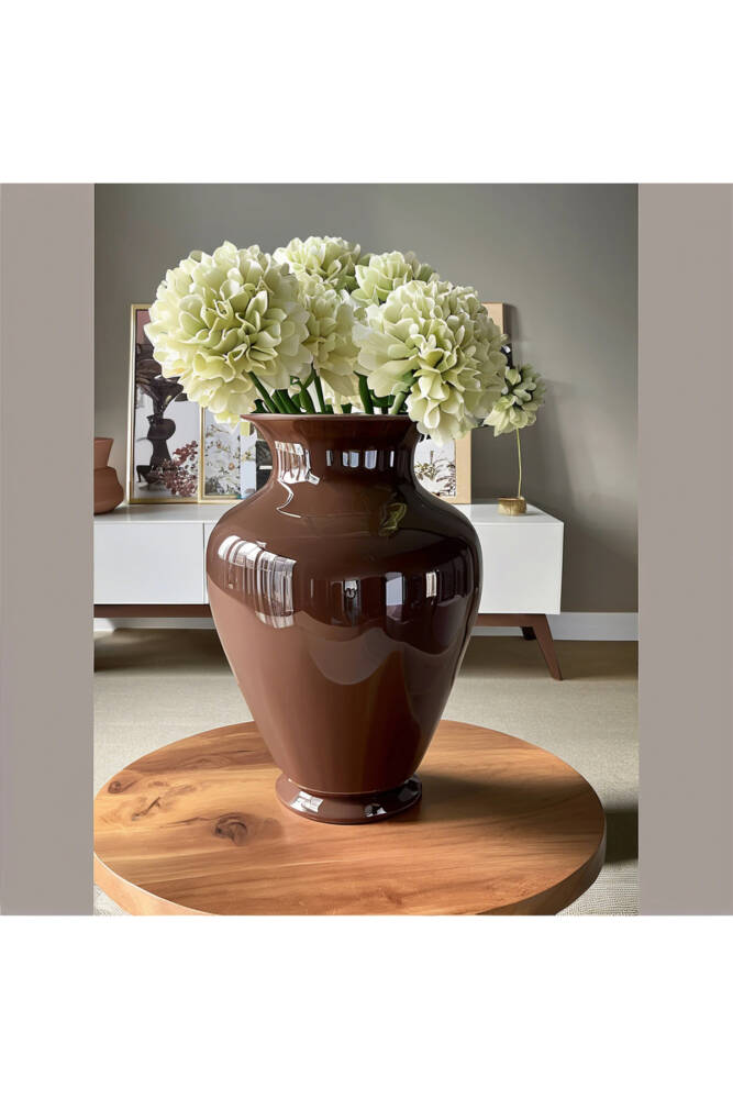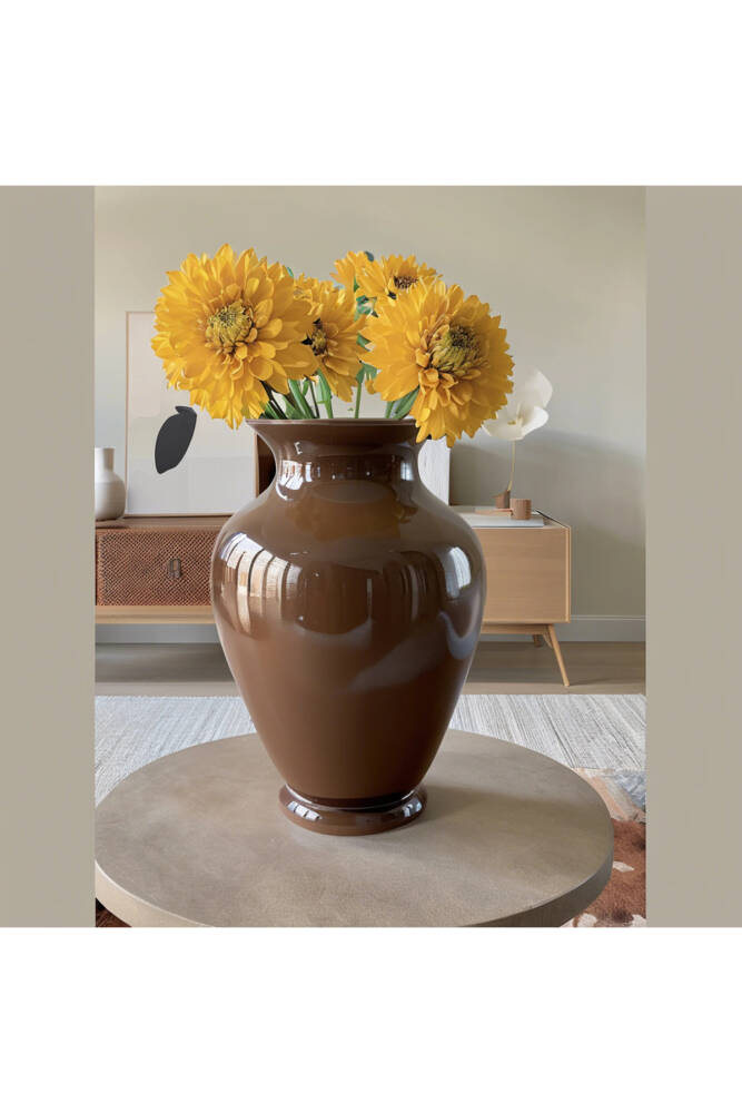 - İskandinav tarzının zarif çizgilerini yansıtan kahverengi cam büyük vazo, mekanınıza modern bir dokunuş katıyor.; - 31 cm boyutuyla dikkat çeken bu vazo, hem dekoratif hem de fonksiyonel kullanım sunuyor; bitkilerinizi veya çiçeklerinizi sergilemek için idealdir.; - Tek parça halinde gelen bu ürün, kolay montaj avantajı sağlayarak zaman kazandırırken estetik görünümünden ödün vermiyor.; - Üretiminde kullanılan kaliteli cam malzeme sayesinde uzun ömürlü kullanım vaat ediyor ve dayanıklılığı ile ön plana çıkıyor.; - Türkiye'de üretilmiş olmasıyla yerel kaynakların desteklenmesine katkıda bulunurken, aynı zamanda yüksek standartlarda üretim sürecinden geçerek kalite kontrolünü sağlıyor.