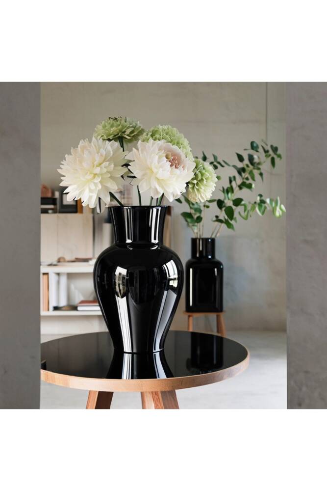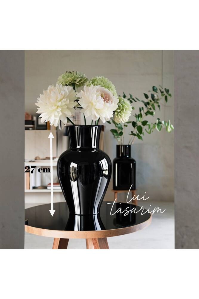 - Siyah renkli tasarımıyla modern ve şık bir görünüm sunar, mekanınıza zarif bir dokunuş katar.; - 27 cm boyutuyla geniş iç hacmi sayesinde bitkilerinizi veya çiçeklerinizi rahatlıkla sergileyebilirsiniz.; - Tek parça halinde gelen bu cam vazo, kolayca temizlenebilir yapısıyla pratik kullanım sağlar.; - Dayanıklı cam materyali ile uzun ömürlüdür; sık kullanıma karşı dirençlidir.
